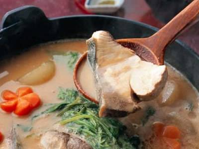 旬のぶりと根菜を具にした、なべ仕立てのかす汁です。酒かすの風味とコクが食欲をそそります。