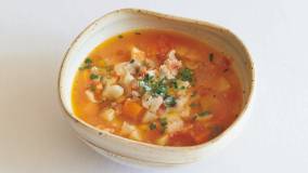 佐賀県の郷土食「だぶ」を洋風に仕上げた、じんわり温まる、具だくさんがうれしい汁物です。