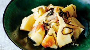 バターじょうゆで香ばしく炒めたたけのこを炊き込んだ、洋風たけのこご飯です。黒こしょうをピリッときかせて。