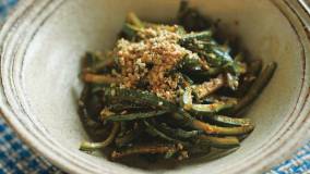 野菜の皮が残ったときはきんぴらがおすすめです。歯ごたえが残るように仕上げるのがポイント。大根やなすの皮でもおいしくできます。