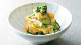 丁字麩(ちょうじふ)を使ったからしあえに菜の花とかまぼこを加えて春らしく、おかず感のある副菜に。なめらかで弾力がある丁字麩がみそだれのおいしさを吸い上げます。あえてから15分間以上おくと、より味がなじみます。
