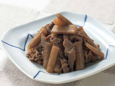 つくだ煮といっても、あっさりと薄味に仕上げた、やさしい味。新ごぼうは食感が残る大きさにし、牛肉にうまみをたっぷり吸い込ませます。