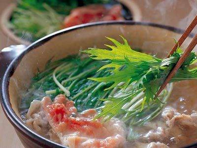 シャキシャキの水菜を、関西風のだしでいただく豚しゃぶ鍋です。シンプルですが相性は抜群ですよ!