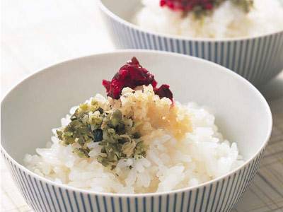 岩手の郷土食・ほろほろ。いわば「しっとりふりかけ」です。くるみや焼きみそ、漬物、春菊…とうまみとほろ苦みのある食材が幾重にも合わさって、大人の混ぜご飯に。