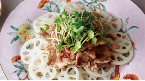 ソフトな豚肉と、シャキッとゆで上げたれんこん。食感の妙を楽しむ、食べごたえあるあえ物です。