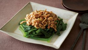 旬の小松菜をたくさん食べたい時におすすめのホットサラダ。サッとゆでた小松菜を、からしだれをからめた豚肉であえるだけ!