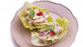 こってり肉おかずと甘酸っぱいミニトマトが相性抜群。あえてご飯はおかずを引き立たせるやさしい味わいに。和の一皿に、パセリやクレソンなどの洋風のアレンジで飽きさせない工夫が光ります。