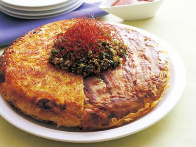 牛切り落とし肉をふんわりまとめてパワフルにしました!たっぷりの香味野菜が、もう、たまりません。