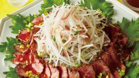 みょうが甘酢をオイルと合わせるだけで簡単に「食べるドレッシング」が完成!豚肉がさっぱり、野菜がたっぷり食べられます。