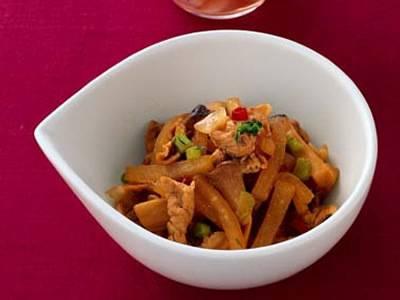 豚肉のうまみとエリンギのうまみが大根にしっかりしみてじんわりおいしい!赤とうがらしの辛みがアクセントになります。