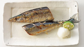 外はサクサク、中はふんわりと焼き、あじのうまみを引き出します。歯ざわりのよい大根の塩もみと一緒にさっぱりとどうぞ。