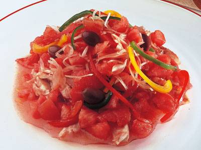 香りよく仕上げたかつおのローストに、塩らっきょうを添えて、葉わさびのドレッシングでいただきます。
