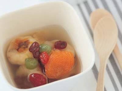 フルーツ入りの白玉をしょうがのシロップでいただきます。しょうがの効果で体もポカポカ温まりますよ。