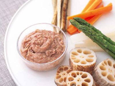 ストックしておいたマッシュ豆をベースにオリーブ油やワインビネガーでドレッシング状にゆるくのばします。