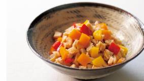 意外な組み合わせですが、だしのしみたパプリカが後を引くおいしさです。うす味に仕上げることで、アレンジも広がります。