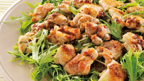 鶏肉の焼き汁に酸味とコクのあるドレッシングを混ぜて、アツアツのうちに肉に回しかけ、いただきましょう。
