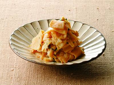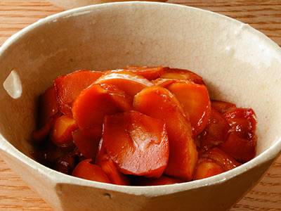 簡単に手で開ける“いわし”。しょうがの甘酢漬けでやさしい味に煮ます。煮て冷ましてを繰り返し、味をしっかり含めていくのがプロのコツ。ご飯やそうめんにも合うおいしさです。