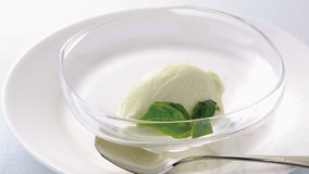 バジルの香り、ヨーグルトの酸味が爽やか。しかも生クリームや卵を使わないので、さっぱりヘルシー。何度も混ぜなくても、ふんわりなめらかな口当たりが楽しめます。