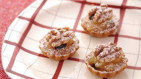 くるみをのせた、とてもかわいらしい小さなタルトレット。タルトづくりで余った生地を使うのもおすすめです!