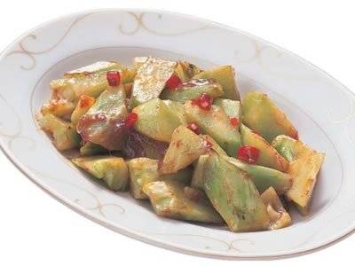 捨ててしまいがちなブロッコリの軸だけで1品。軸の甘みに、豆板醤(トーバンジャン)のピリリがマッチします。