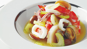 サッとゆでたセロリと、弾力のある魚介類がよくなじんで、食べやすくおいしい!あさりの塩味と、だしのきいたドレッシングでいただきましょう。