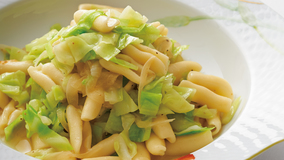 南イタリア・プーリア地方の手打ちパスタ「カヴァティエッディ」を使った一品。春キャベツの甘味を楽しめる一皿に仕上げます。