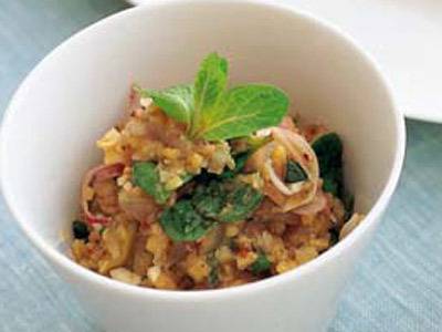 ちょっとしたおつまみにもなり、ご飯にも合うおかず。少し辛味のあるハーブ類を使ったソースは、さわやかな味。