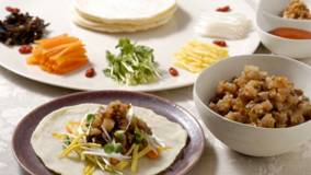 しいたけに肉入りのえび団子をのせて蒸すだけ。蒸したら、彩りよくのせた野菜に、熱したごま油をかけて香りよく仕上げましょう。