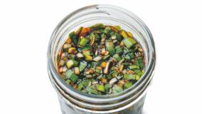 鶏もも肉に薄くみそを塗り、ラップに包むだけの気軽なみそ漬けです。小松菜を敷いて焼けば、焦げにくく、付け合わせのおかずも同時に完成!