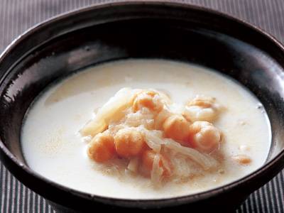 甘いたまねぎと、ふっくらと煮えた豆が驚くほど風味豊か。やさしい味のスープなので朝食などにも是非。