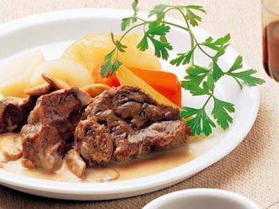 ポトフを本場フランスのレシピで作ります。煮汁の一部を利用したマッシュルームソースをかけて。