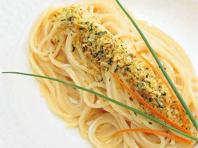 パン粉に入れるバジルをソースにも。オレンジ風味のハーブパン粉とのダブル使いで香り豊かな仕上がり。