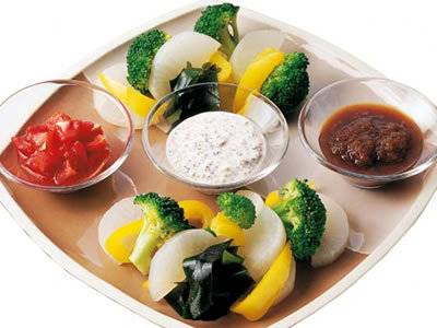 3種類の手づくりドレッシングでおいしくヘルシーに!野菜をたっぷり食べられますよ。