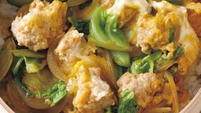 鶏ひき肉をつまんで入れるから、ゴロリとして食べごたえ十分。卵が煮汁を抱き込んでふんわり柔らかく固まります。野菜はねぎやピーマン、にんじんでもOK。お弁当におすすめです。