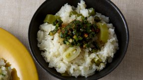 野菜から出る水分だけで蒸し上げる、ヘルシーな重ね蒸し。シャキシャキのねぎを、しょうがポン酢をつけた豚肉で包んで食べて。