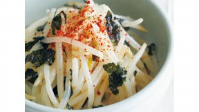 ヒラヒラのリボン状にしたにんじんの歯触りが楽しいサラダです。トッピングのナッツも電子レンジでカリカリに。