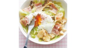 豆腐入りの肉ダネを電子レンジにかけて、ジャンボサイズの肉だんごに。耐熱容器を型がわりにするので、丸める必要もありません!