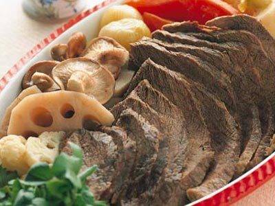 塊肉と野菜をスープでゆでて、素材のうまみを楽しみます。冷めるまでゆで汁につけておくことで、しっとりとした仕上がりになります。