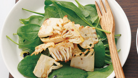 こんがり焼いたたけのこの歯ごたえがくせになるサラダです。バルサミコのコクと酸味がよく合いますよ。