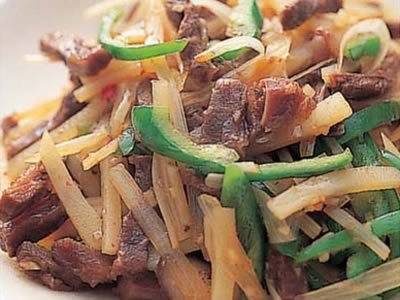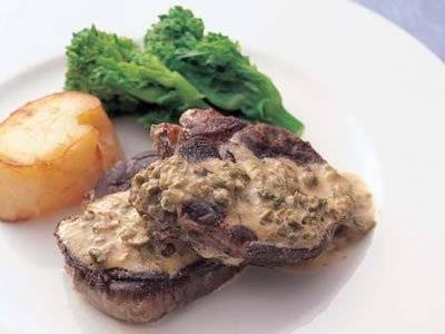 軽い酸味のあるサワークリームソースをかけた、ステーキ風の一皿です。食べごたえのある牛すね肉がたまりませんよ。