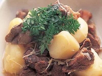 牛すね肉を煮たうまみたっぷりのスープでつくる一品です。ほんのりワインの酸味も残って絶品ですよ。