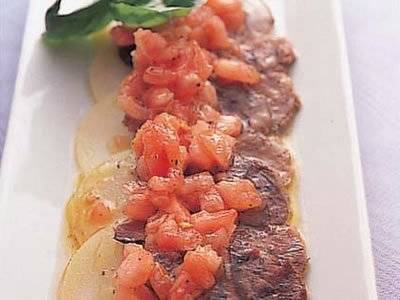 柔らかく煮た牛すね肉をオリーブ油と白ワインビネガーで前菜風にいただきます。牛肉のうまみをしっかり味わえますよ。