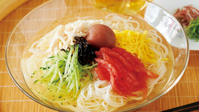 だしに梅干しを入れて煮出します。ほのかな梅の酸味と香りが隠し味。冷たいそうめんが一層おいしく食べられます。