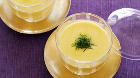梅と卵の風味を生かした冷たい茶碗(わん)蒸しです。フワフワ、ツルッと、何ともいえないのどごしのよさ。
