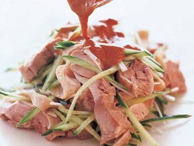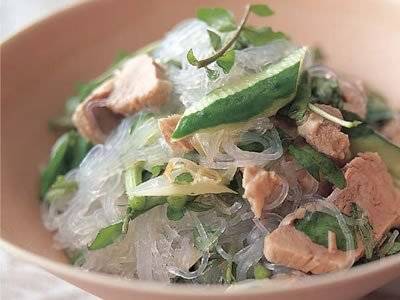 レタスはシャキッとゆで上げる、アスパラガスは根元をたたく、これで百点満点のあえものに。