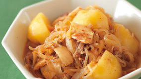 じゃがいもは食物繊維豊富で、エネルギーはご飯の半分です。低エネルギーのこんにゃくと合わせて、食べごたえのあるおかずに仕上げます。