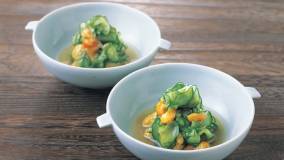 「きゅうりがおいしくなったころがほやの旬」というほどの出合い物。しょうがをきかせた三杯酢が、味を引き立てます。