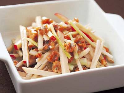 梅干しを調味料代わりの味つけに使い、さわやかに仕上げます。れんこんを長芋に代えても。