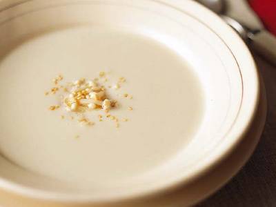 なめらかなポタージュも、ミキサーを使えば以外に簡単。クリーミーな味わいの中にごま油の香りがきいています。