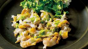 この時季おいしさが増す、するめいかで一皿!いかの甘みと風味の強いさんしょうソースがよく合います。